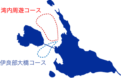 いずれも天候や海況海象の状況により当日航路を変更させて頂く場合がございます。予めご了承ください。